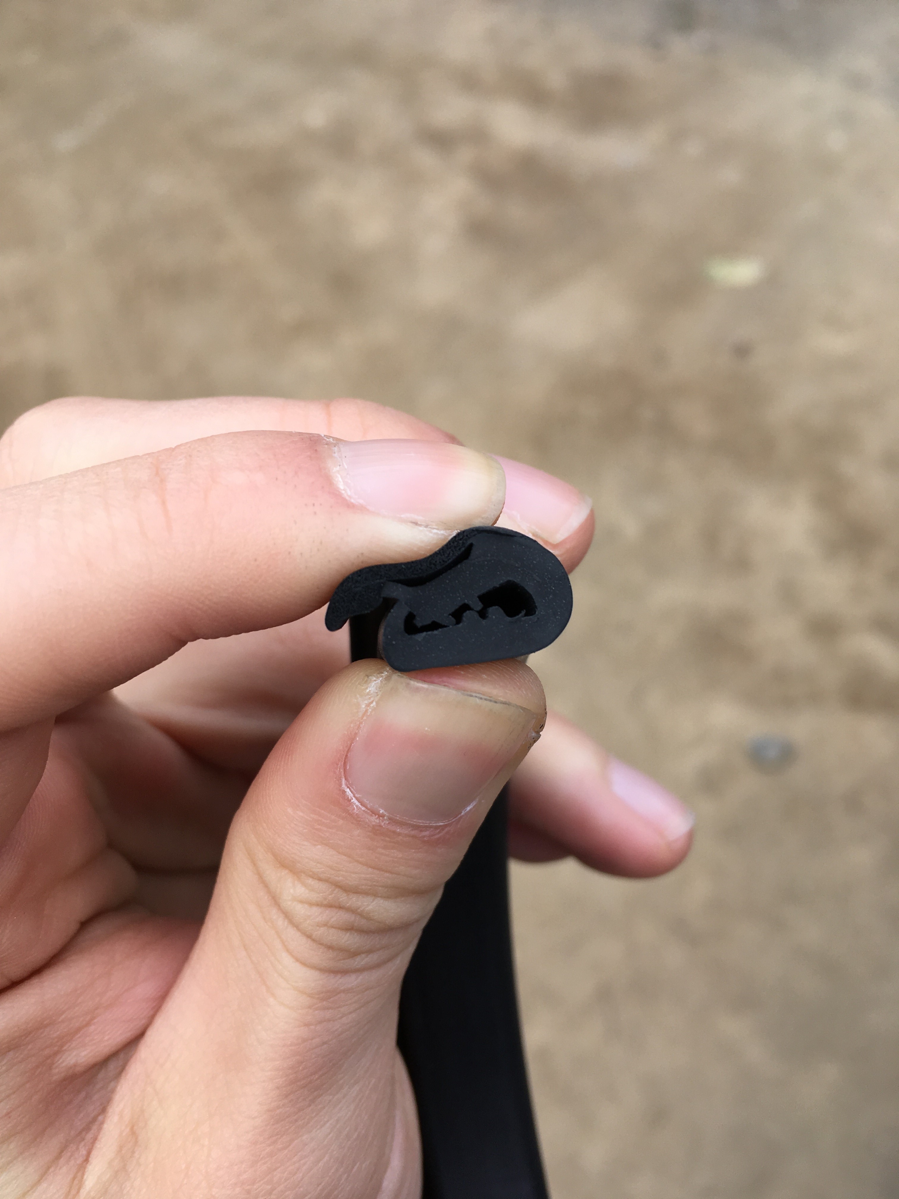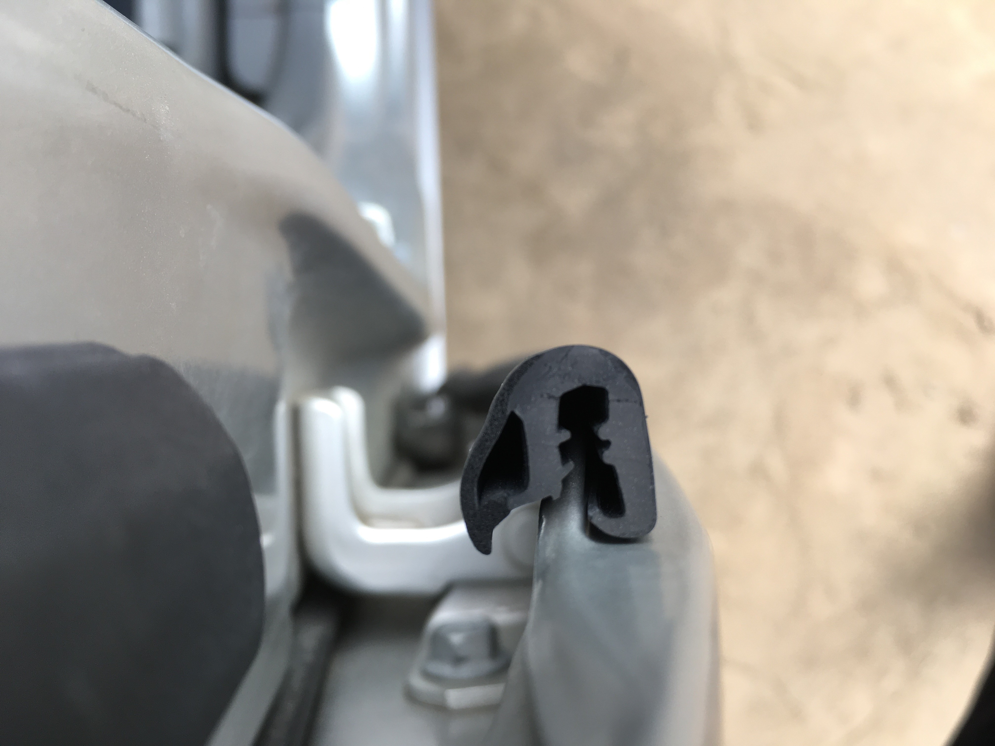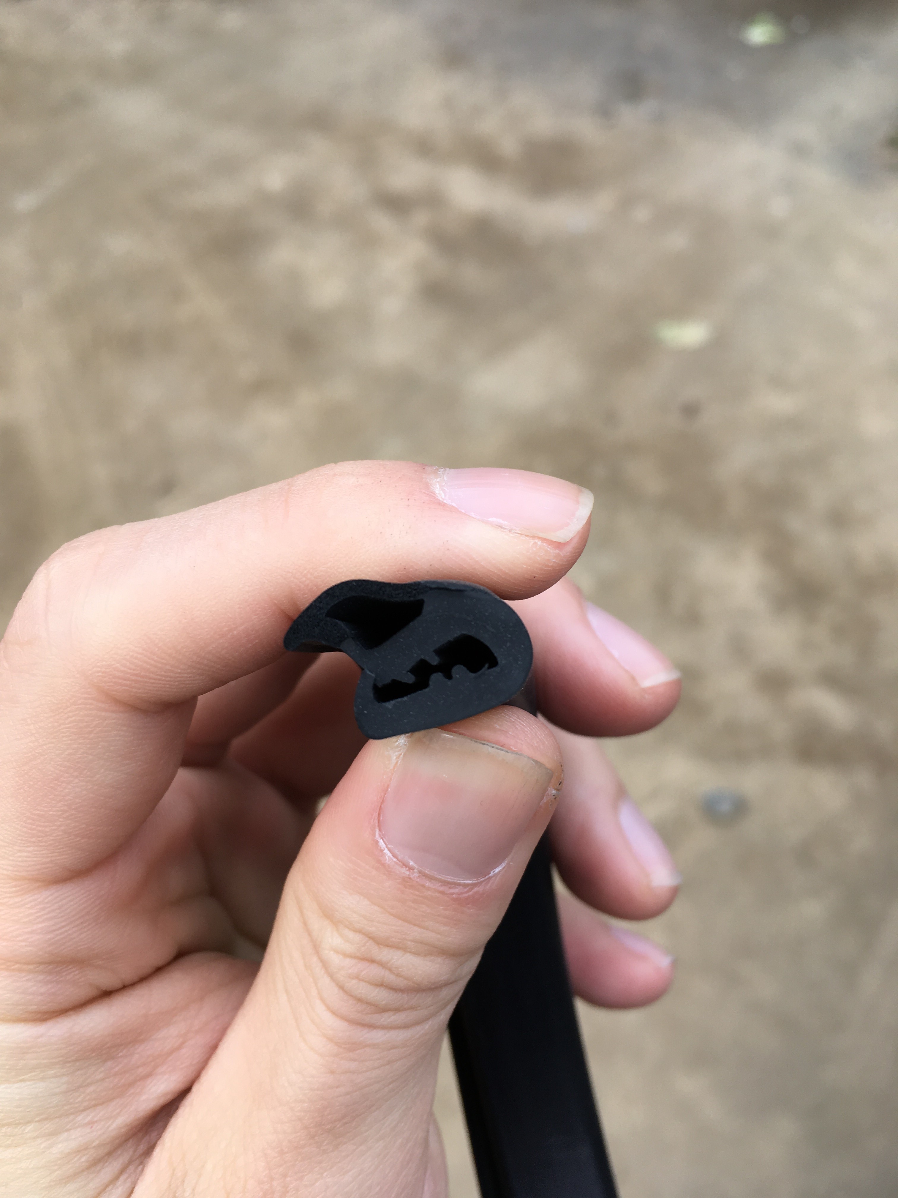 風切り音防止モールの断面はこんな感じで、手前が車内側である