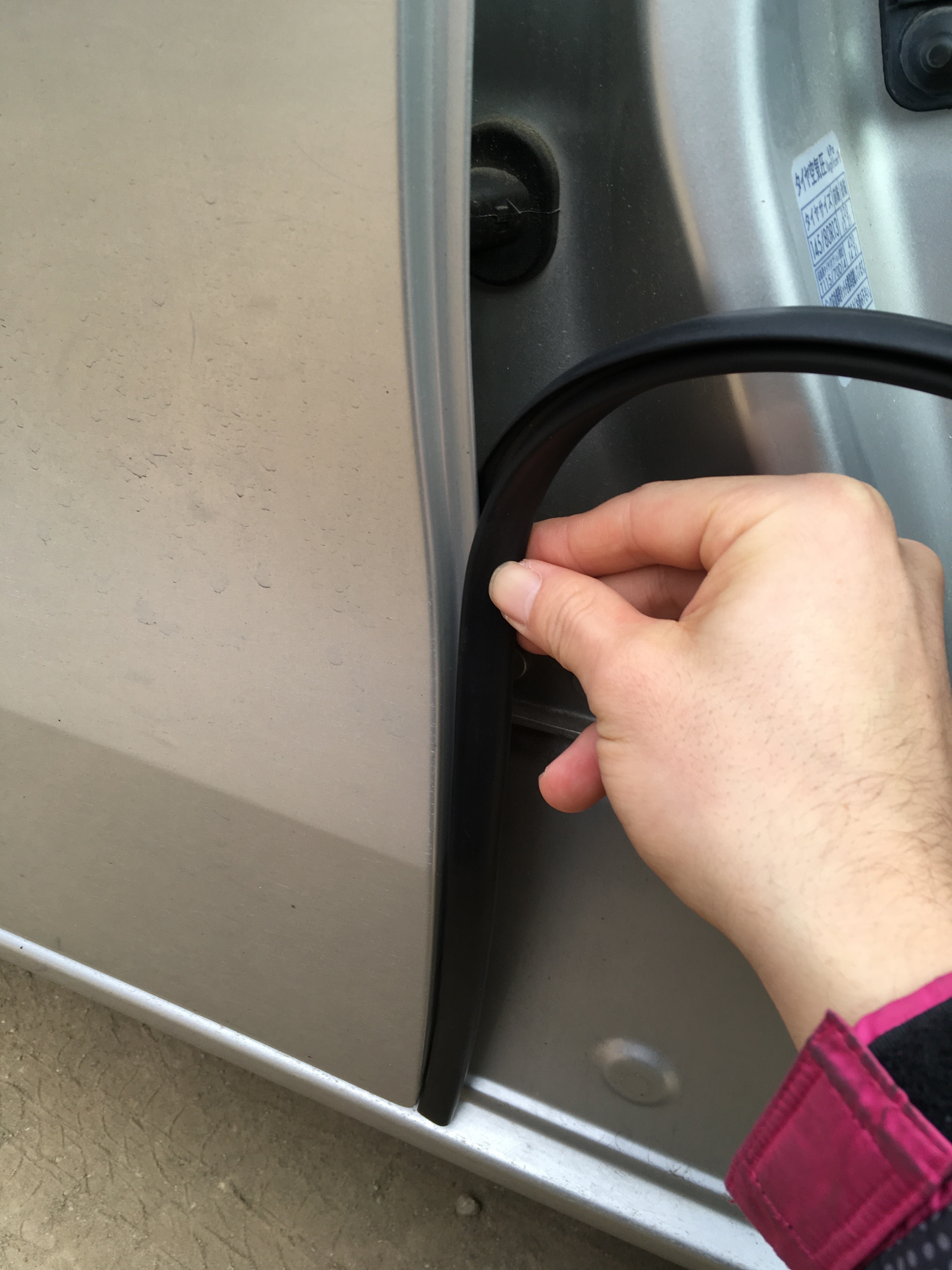 リアドアの風切り音防止モールをはめ込むエッジ部の様子
