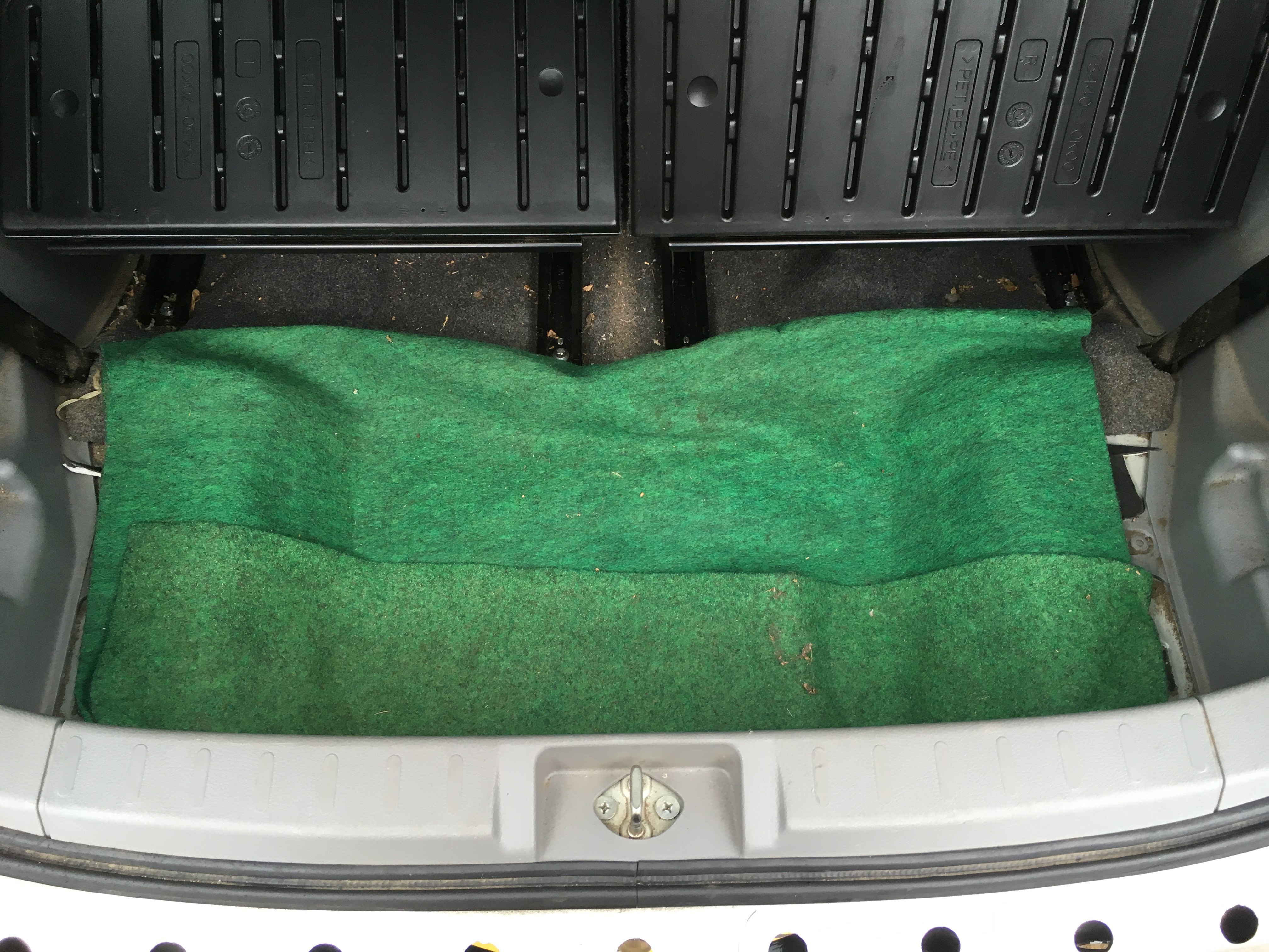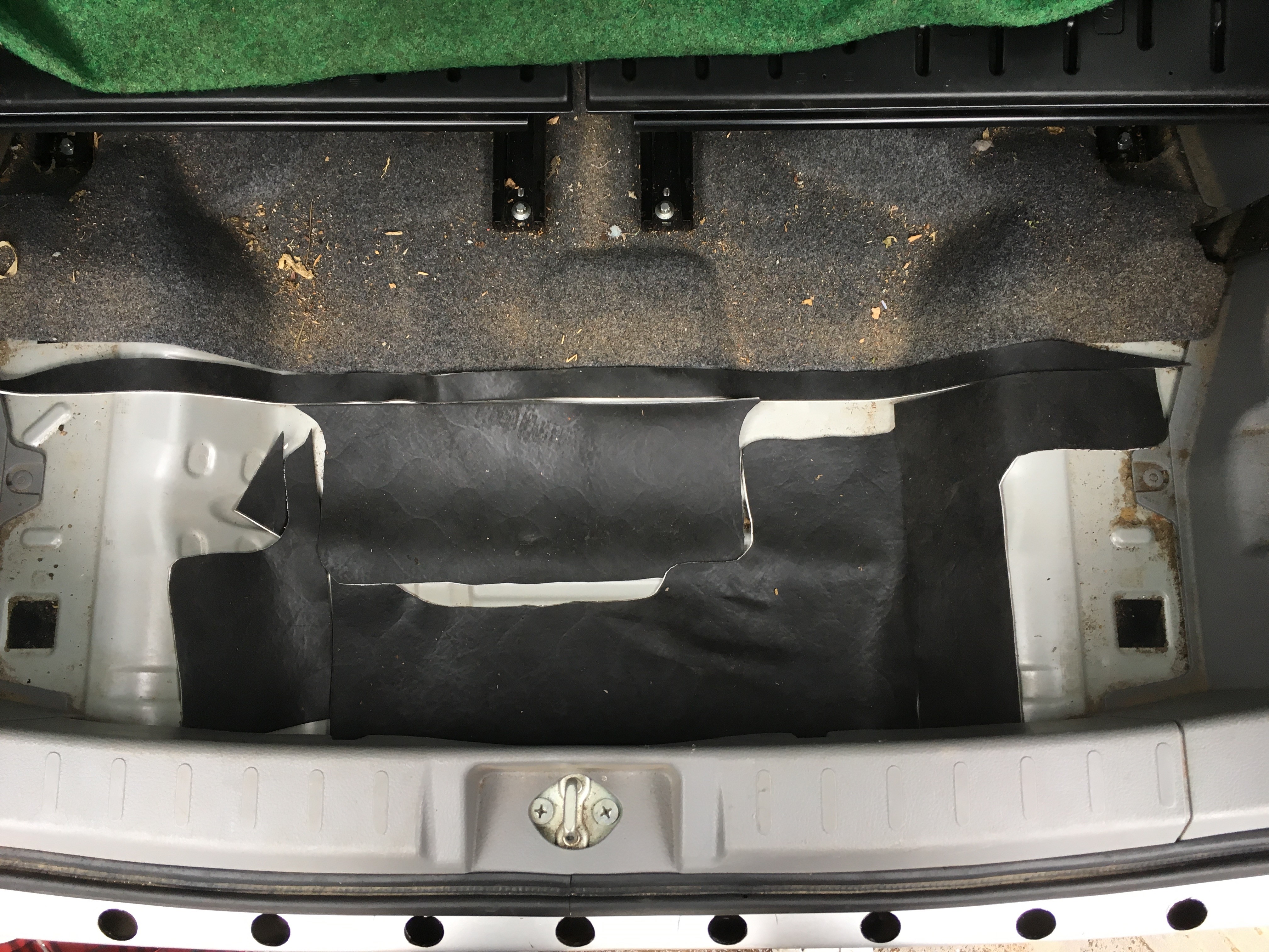 ということで、謎の緑色カーペットもロードノイズ対策に使ってみることにした。