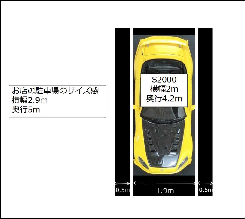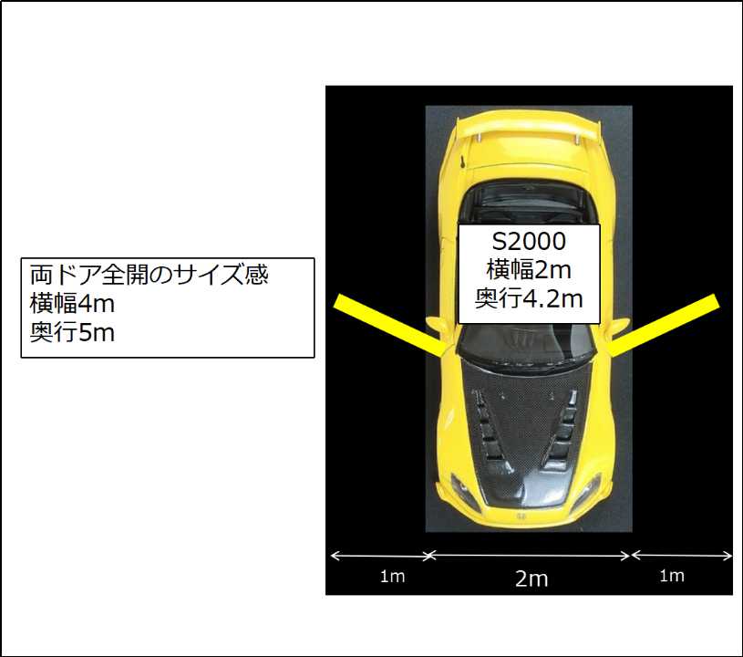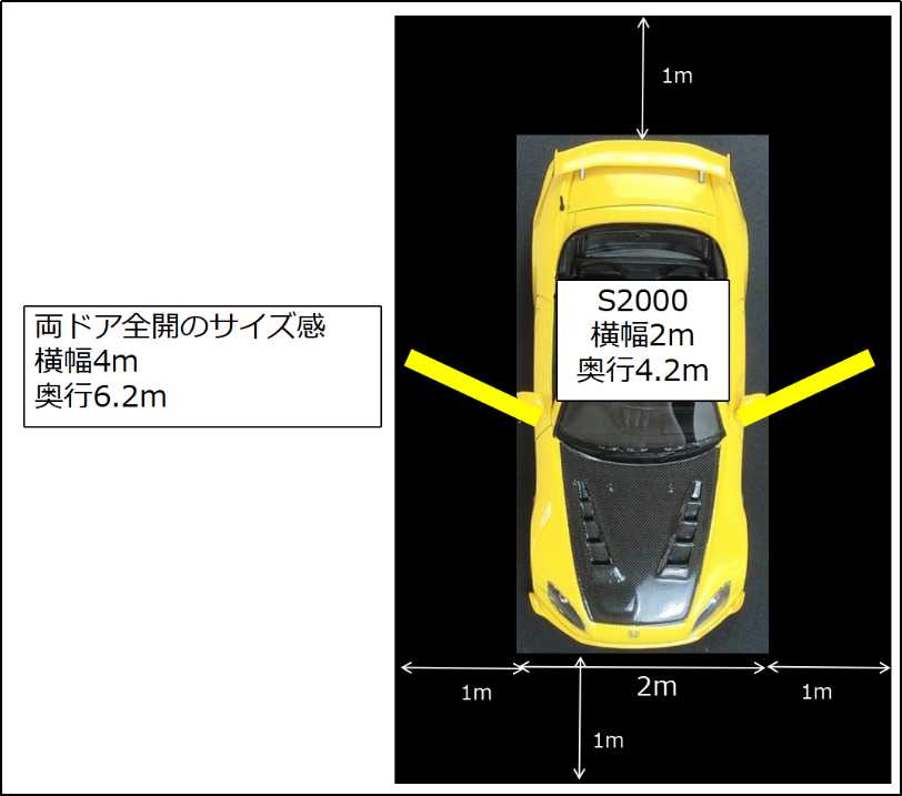 私の場合はS2000をガレージに入れたいので、S2000を例にしてガレージの大きさを検討してみた。