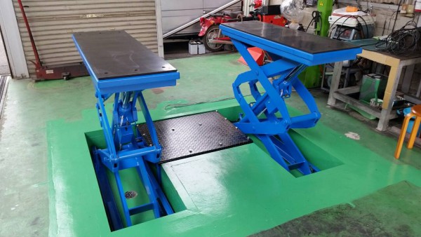 パンダグラフ式リフト・トータスリフト・イーグルリフトの特徴は、使わないときは床に格納された状態で、リフトアップするときのみ床から出てくるのである。