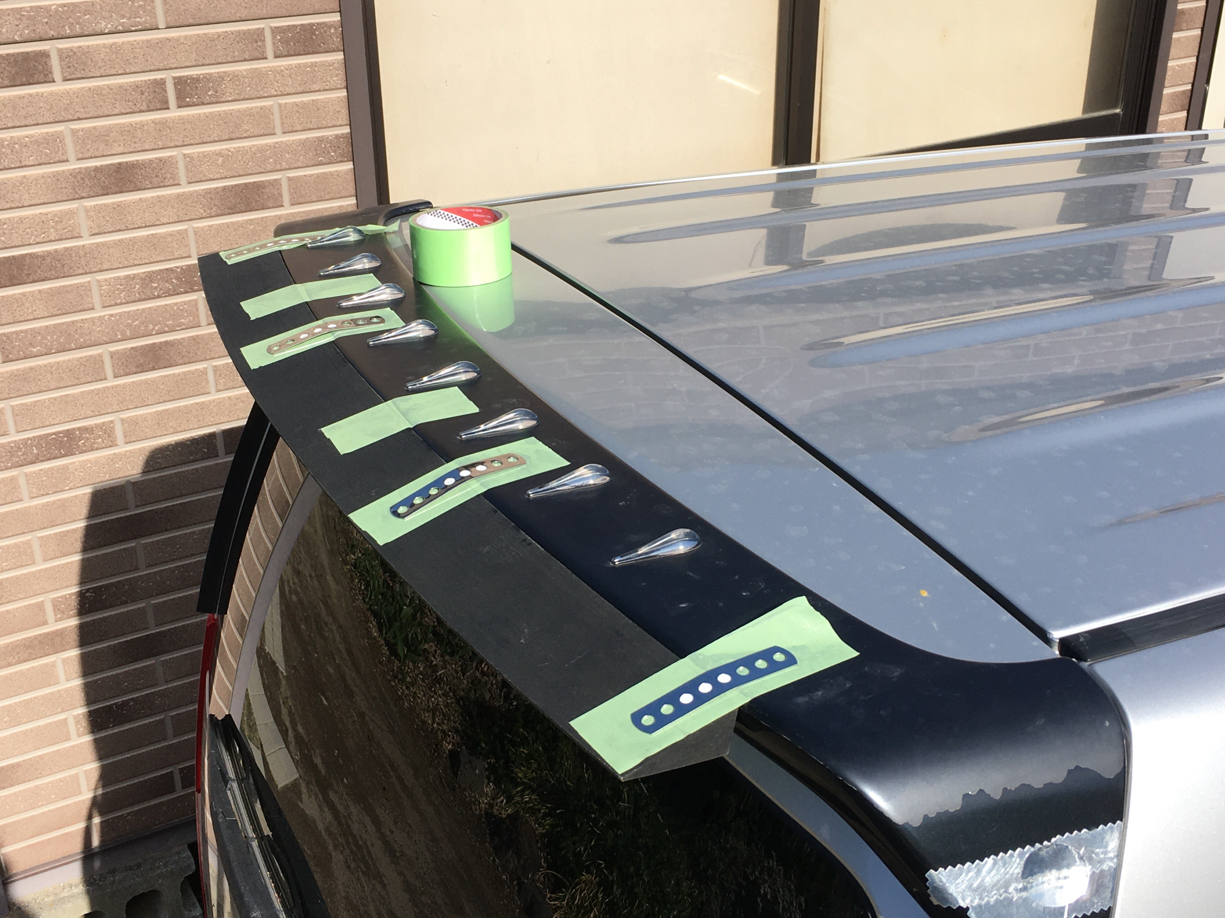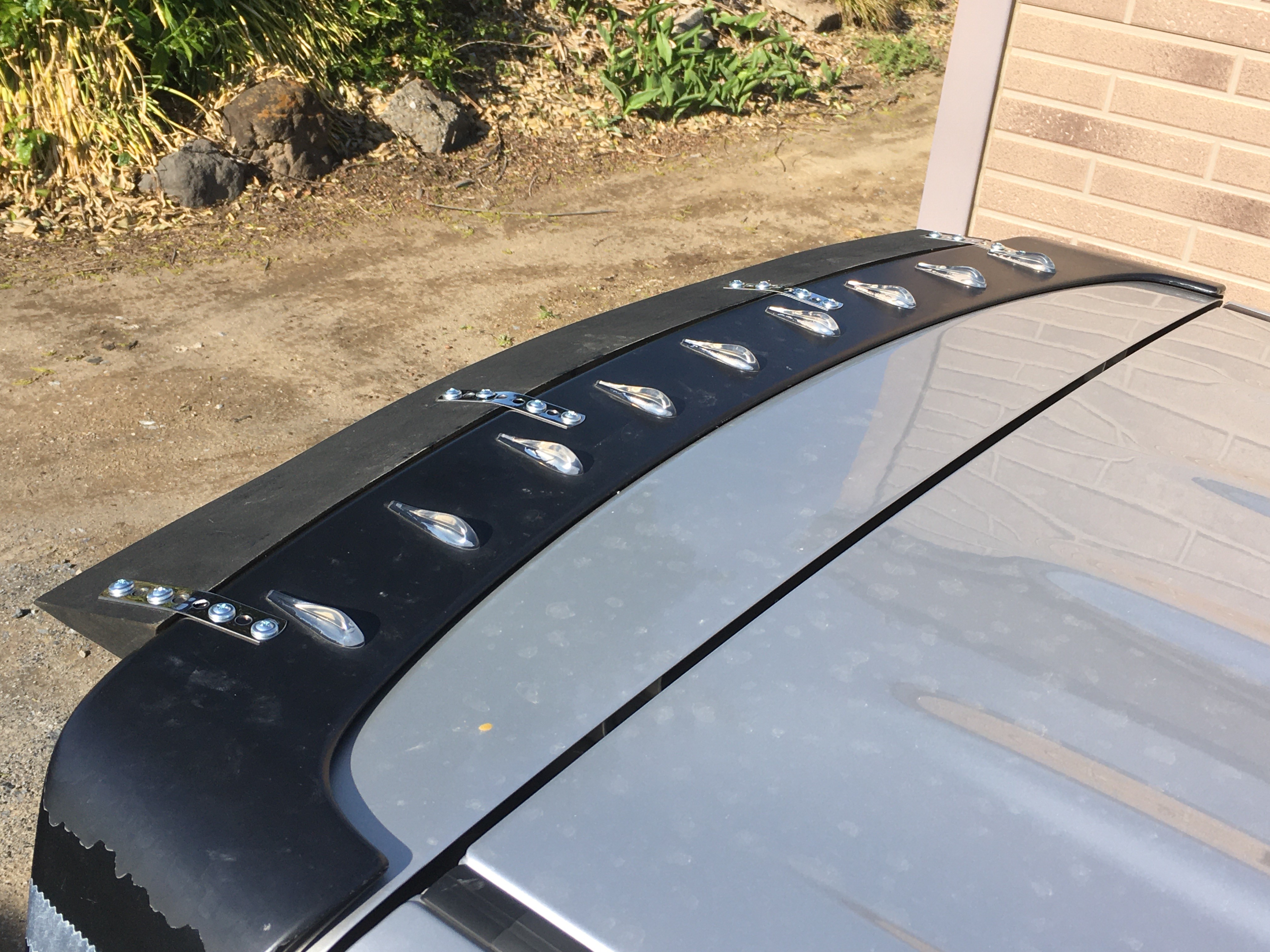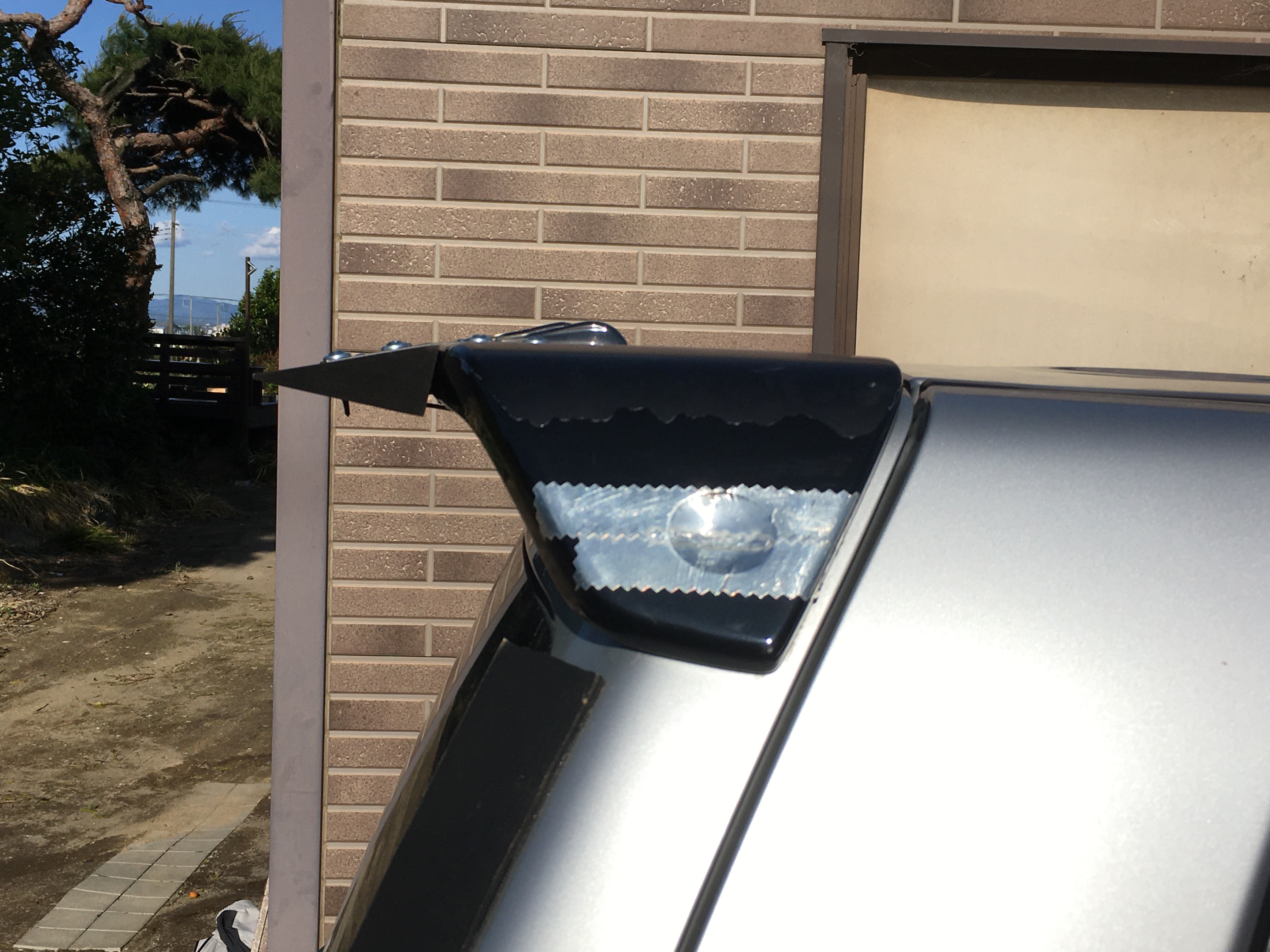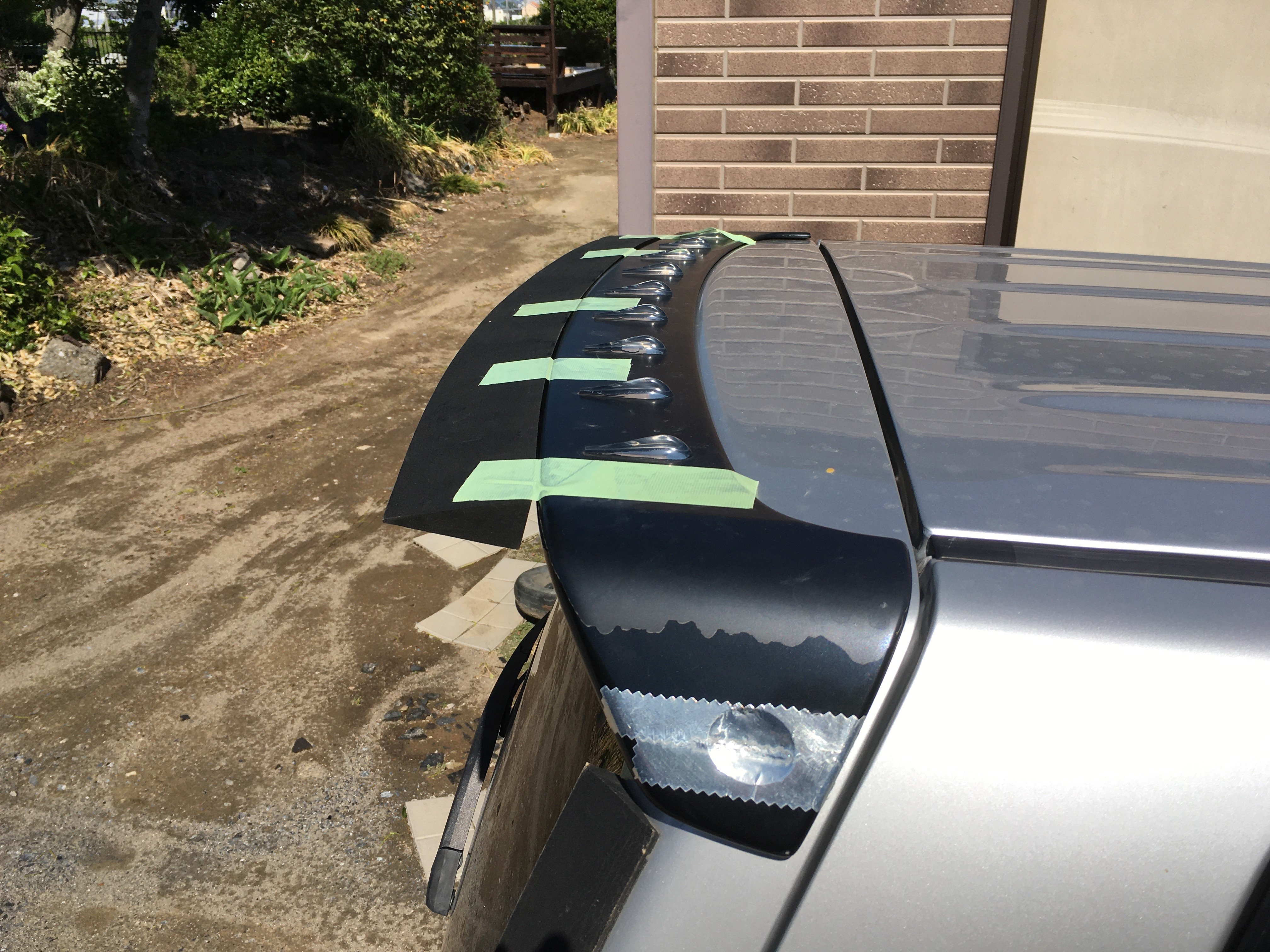 自作延長スポイラーで純正ルーフスポイラーを流線形に、できるだけ長く