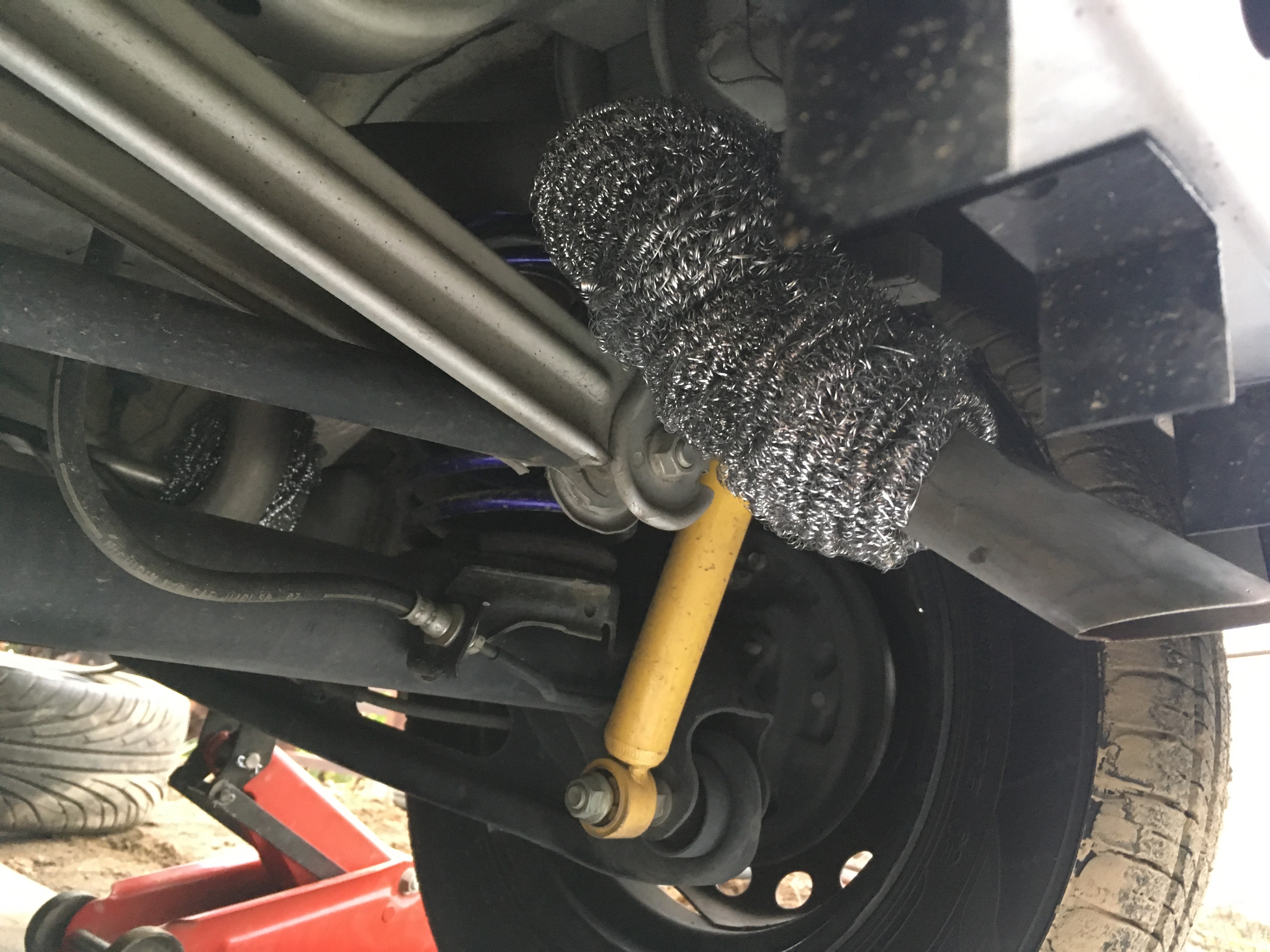 100均で手に入るステンレスたわしをマフラーに括り付け、マフラーアースとしての役割を持たせるというものである。