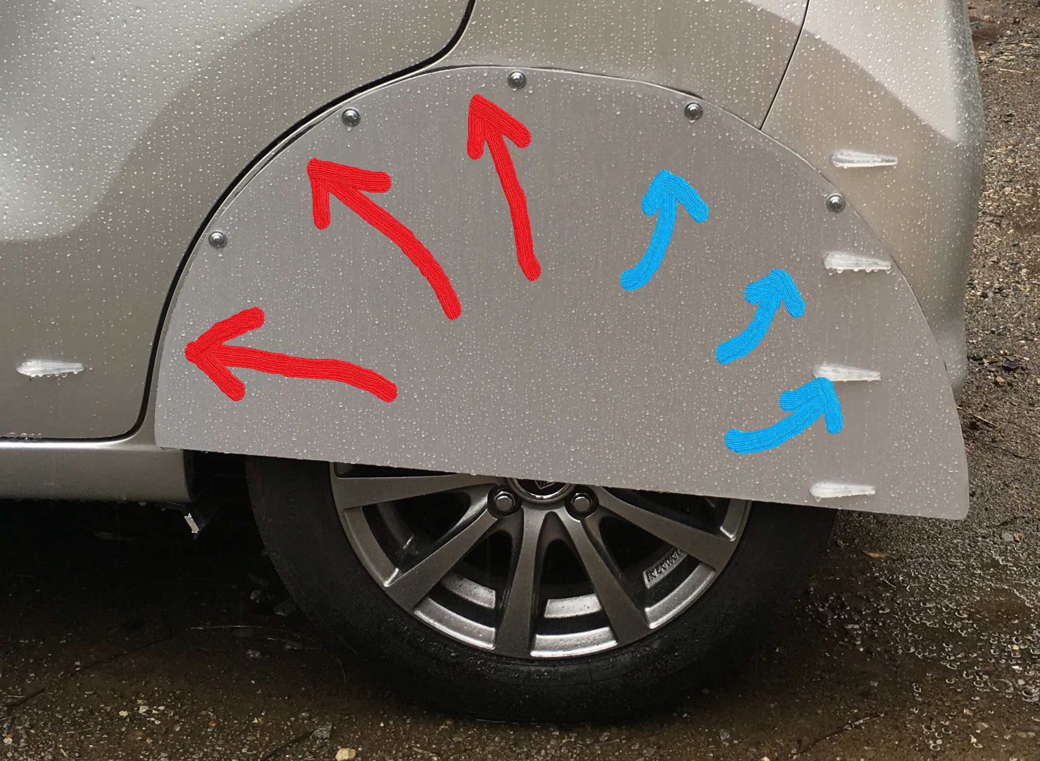 - フロントタイヤに当たる走行風を自作フェンダートリムで整流し、燃費UPせよ!