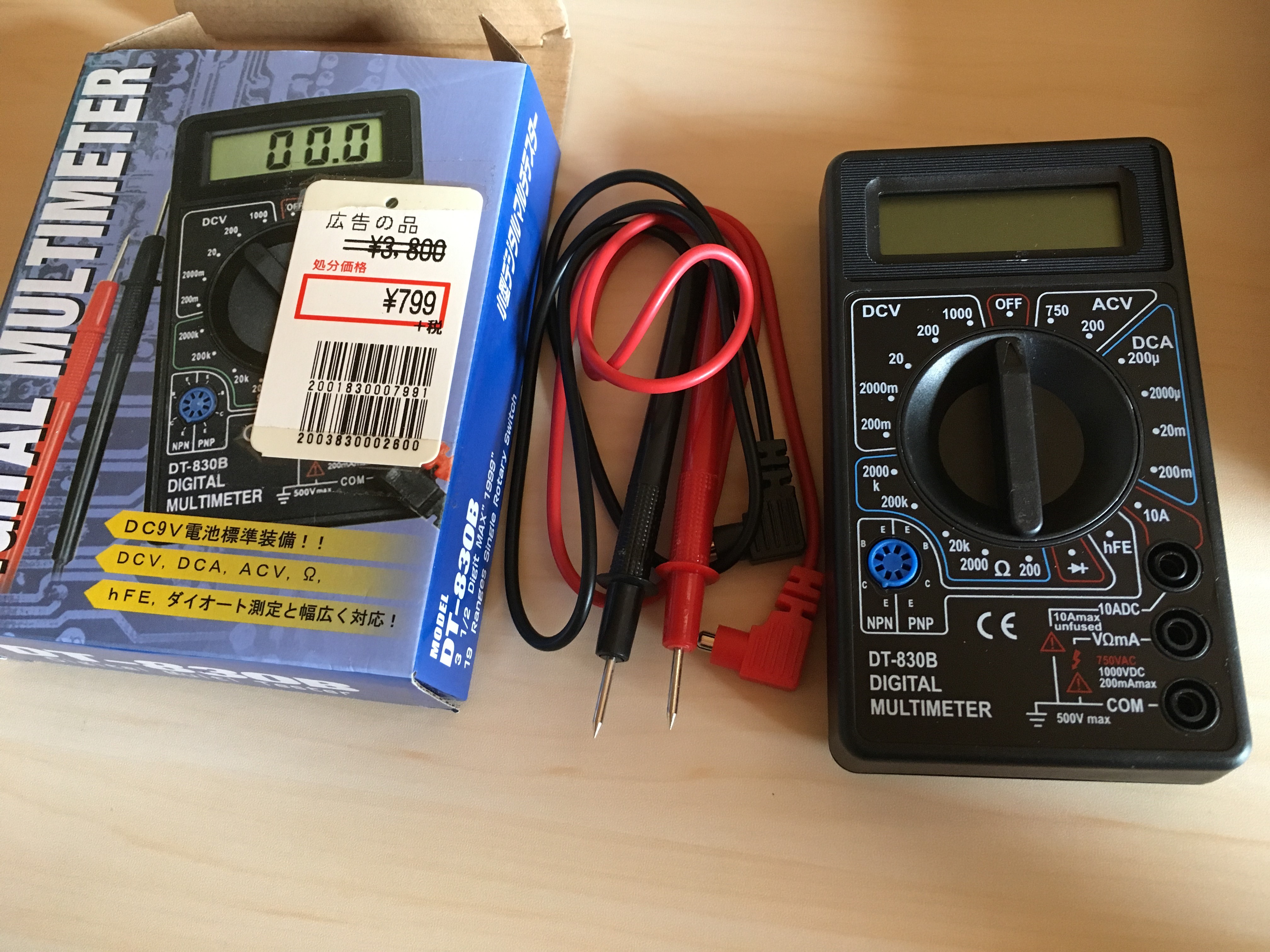 今回使ったテスターは小型デジタルマルチテスターのDT-830Bというものである。