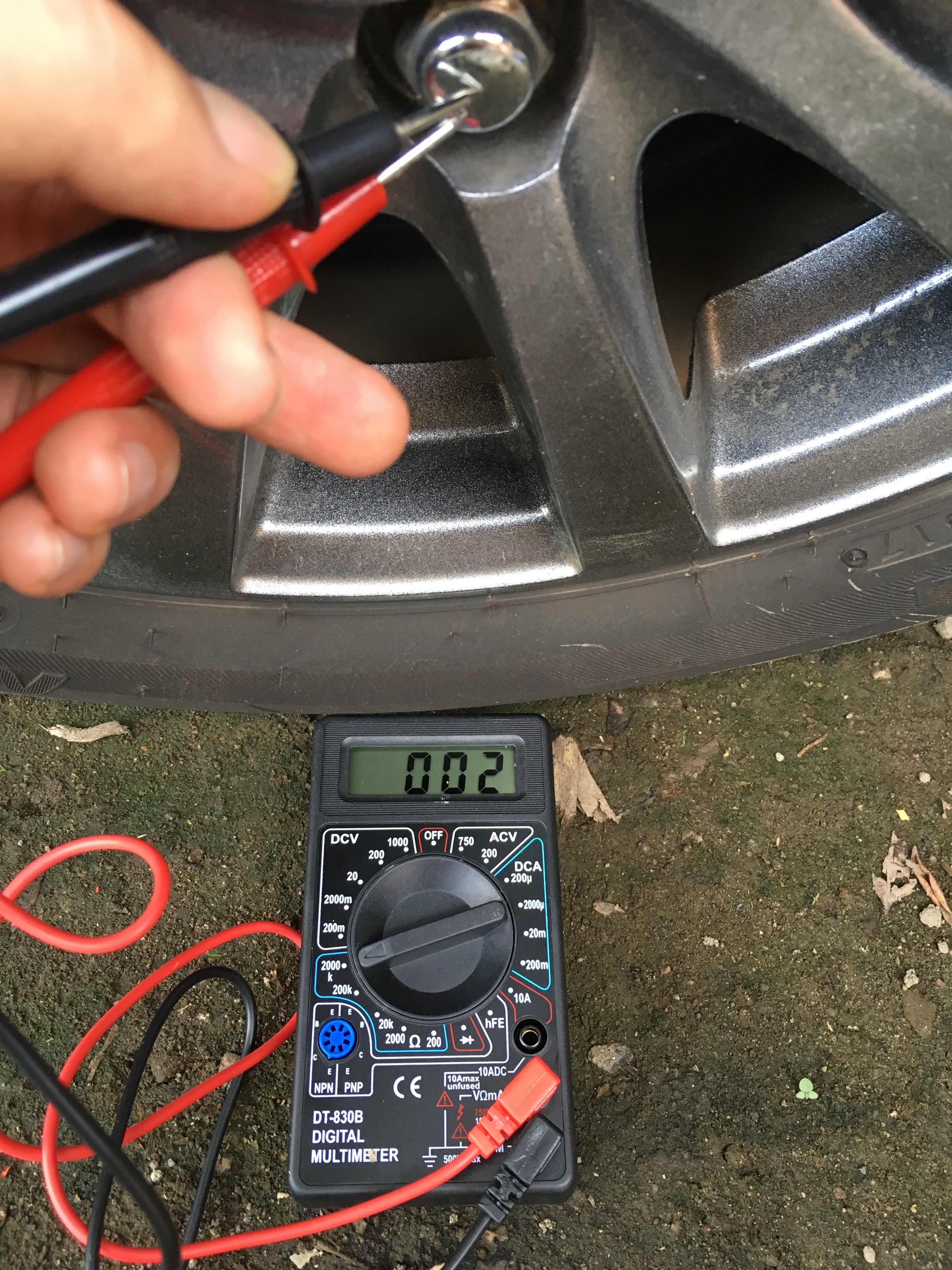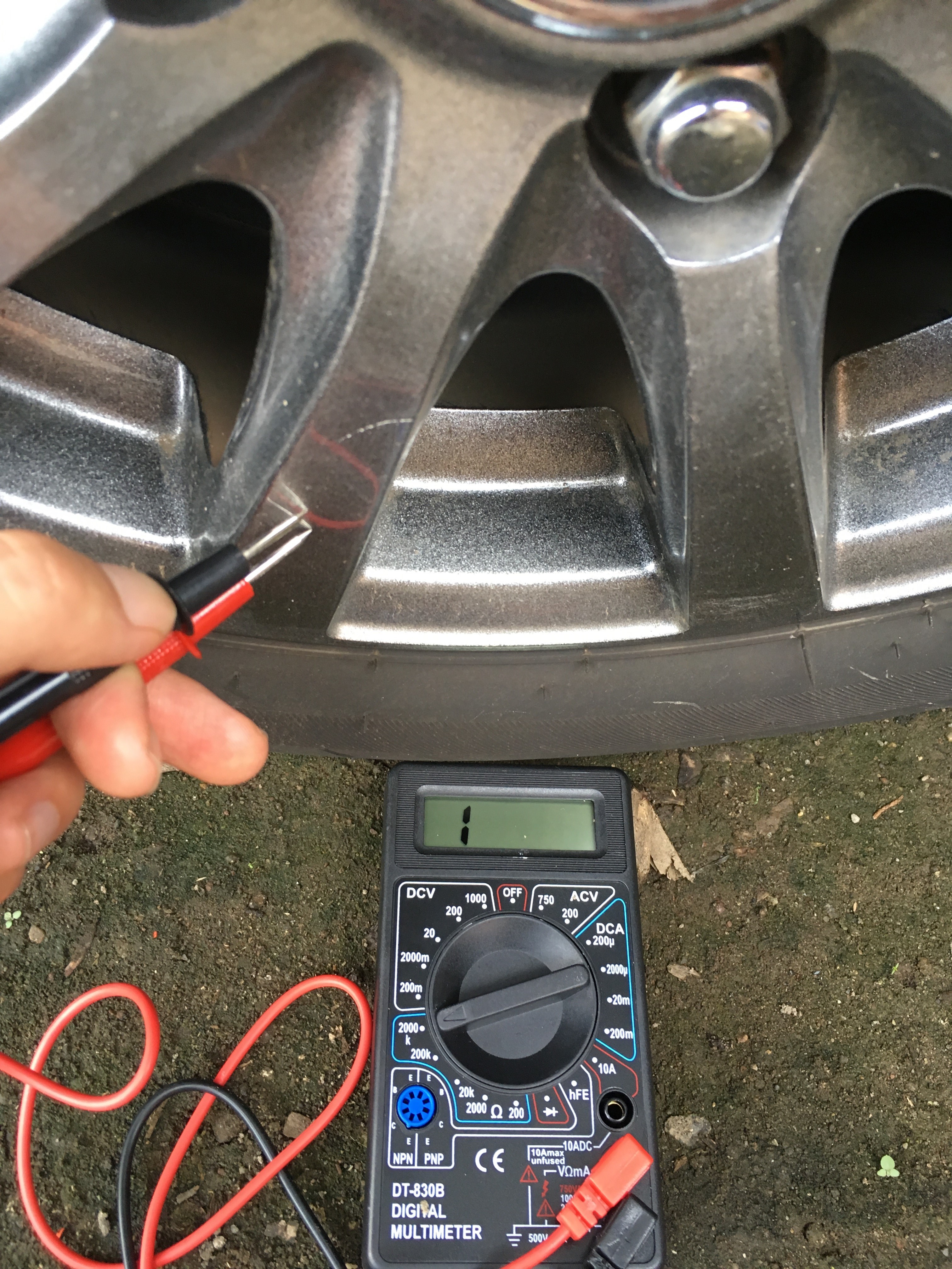 とりあえずテスターで現物のアルミホイールを確認してみよう