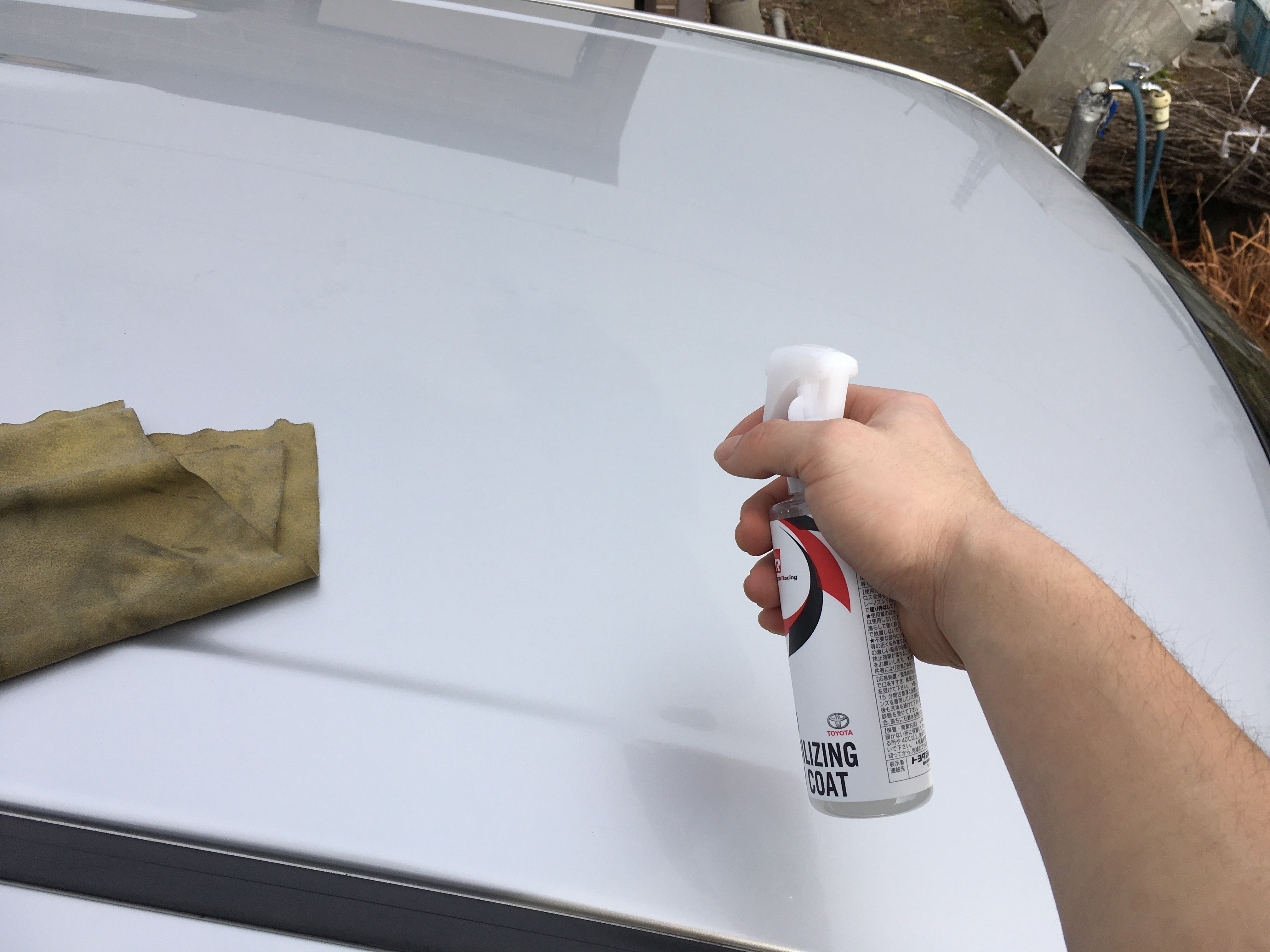 満足いくまで洗車をしたら、次はお待ちかねの「GRエアロスタビライジングボディーコート」でコーティングである。