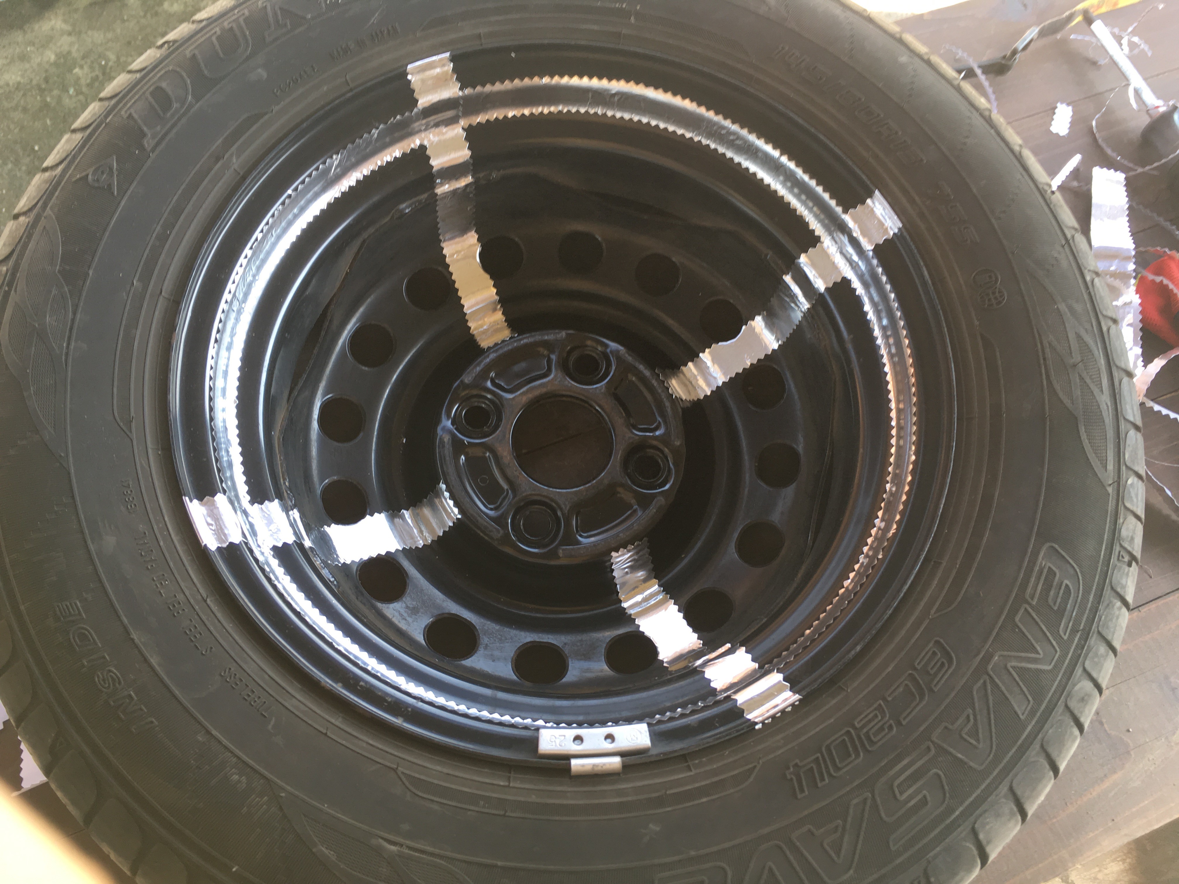 純正スチールホイールの内側にアルミテープチューン。今回は大成功だ。
