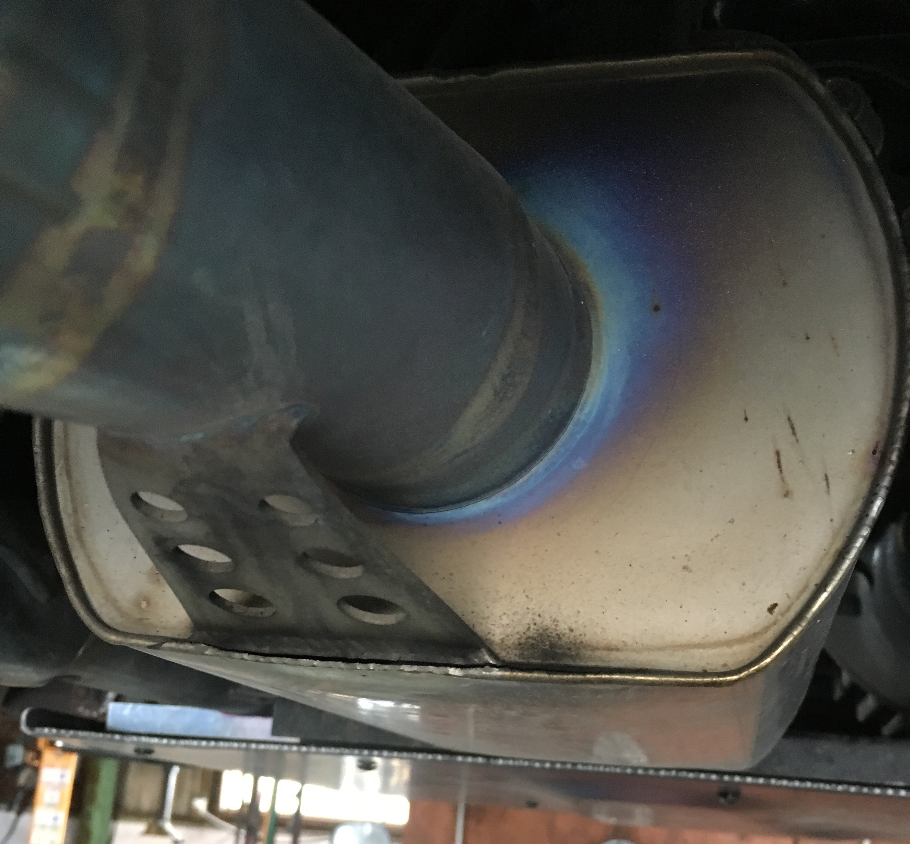 親父の知り合いの青山さんが経営する「モーターサービス青山」にてVOLTEXのリアディフューザーを装着してもらっている最中にチタンマフラーの排気漏れが発覚した。