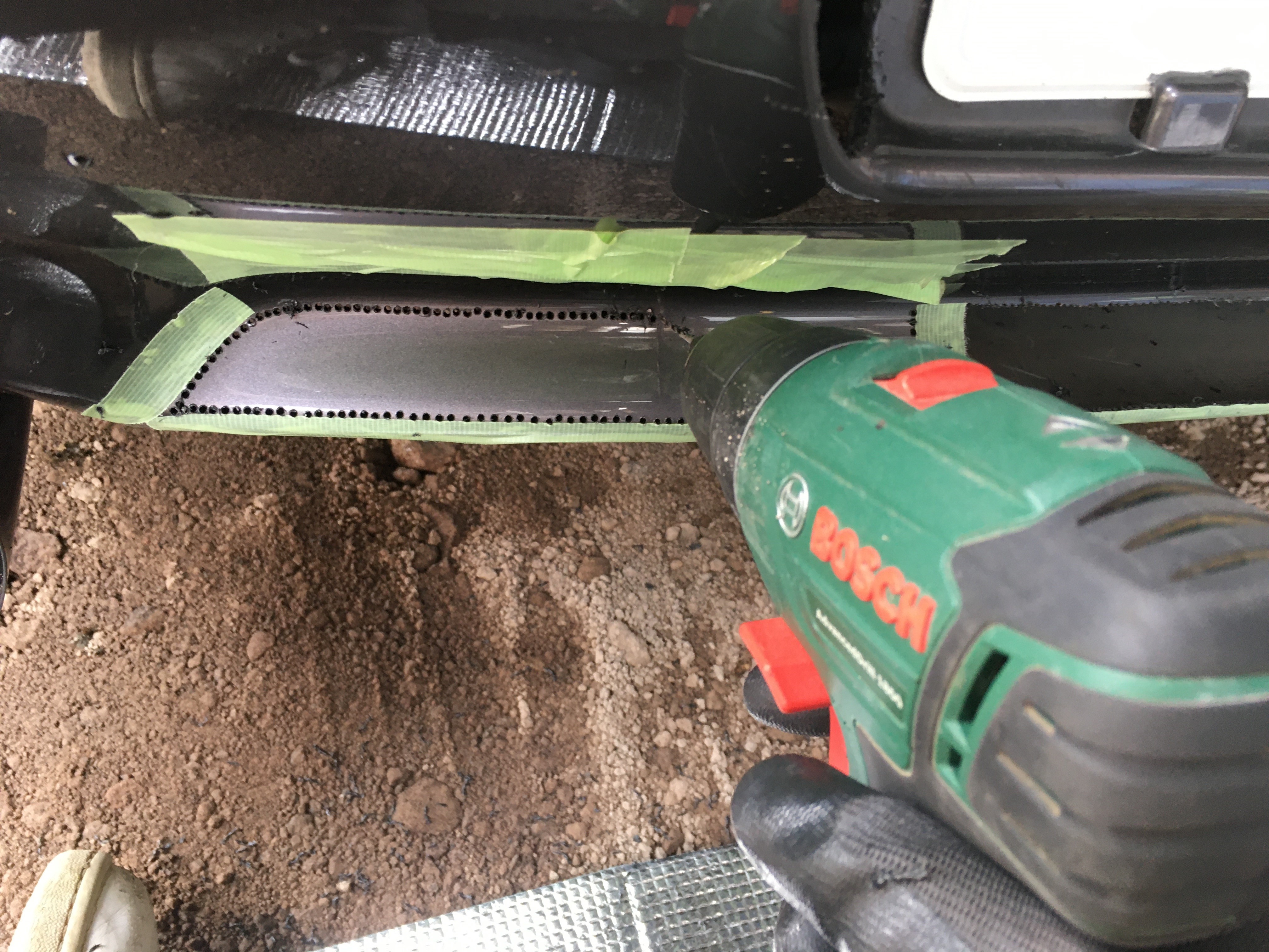 そこで今回は、お金を掛けず、どうにかしてS2000の危なっかしい挙動を抑え込むべく、リアバンパーの穴開け加工に取り組むことにした。