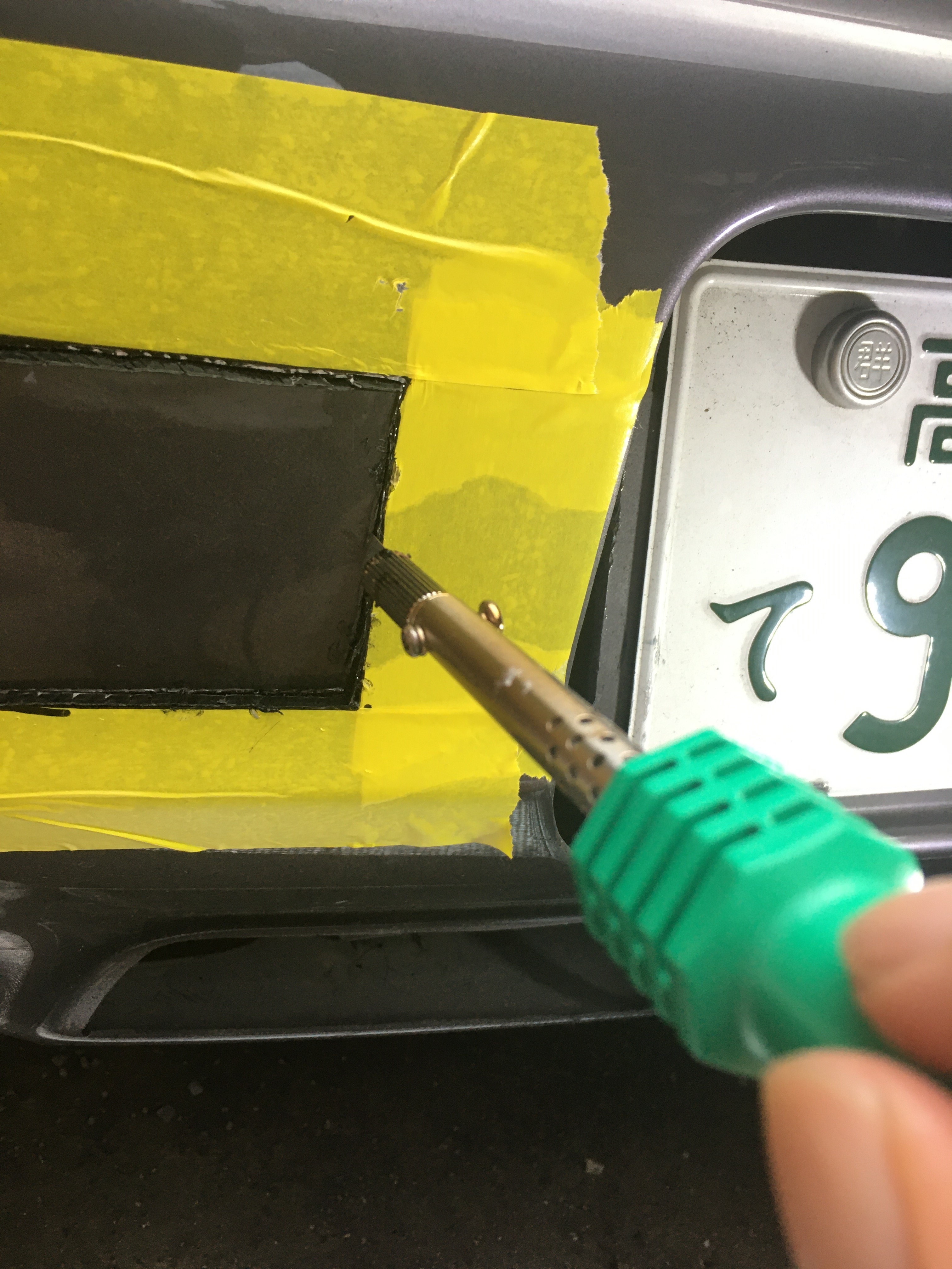 そもそもリアバンパーは板厚が5mmくらいあり、熱で溶かし切るにはホットナイフのパワーが足りず、ちょっとずつしか切れなかった。