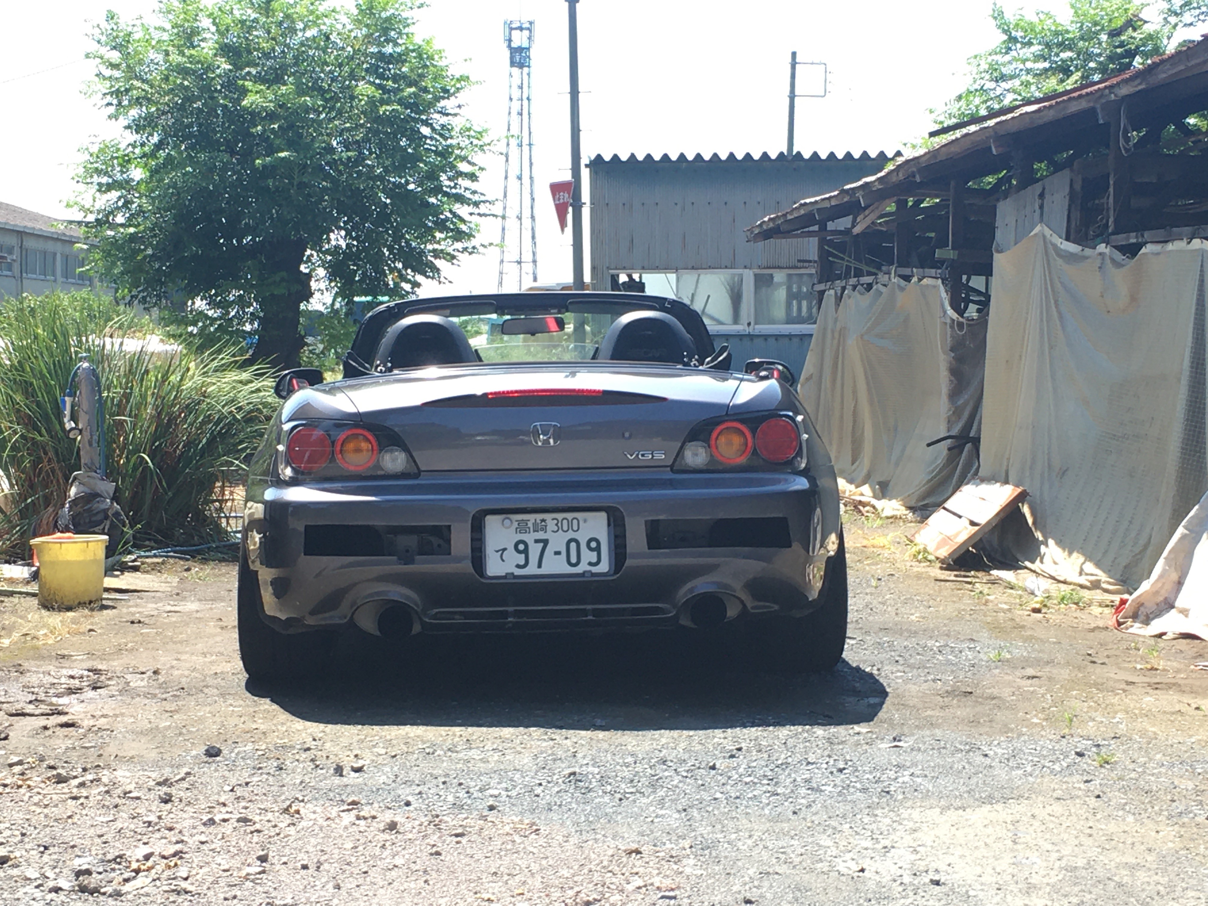 上の画像は純正リアバンパーに穴開け加工した愛車S2000の姿である。