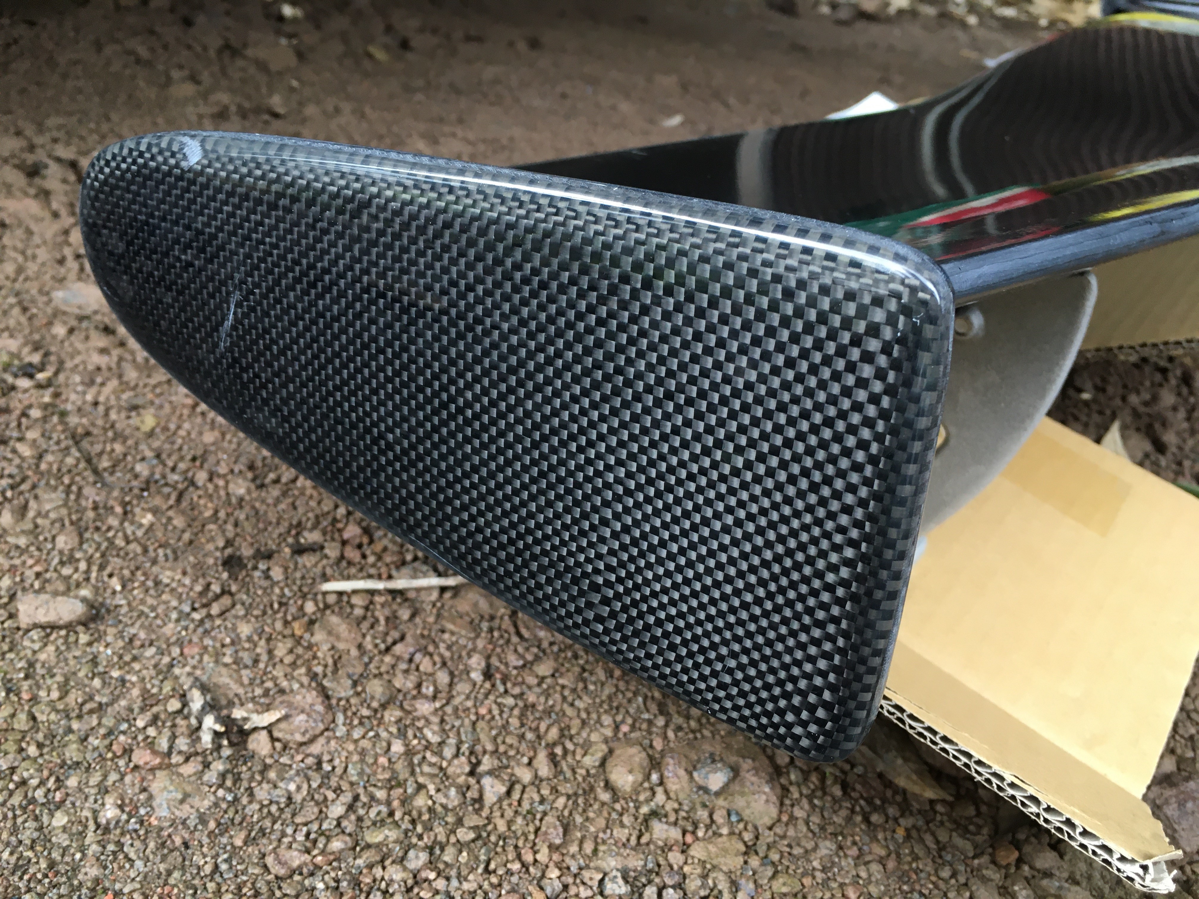 新車販売されていた当時、無限から純正オプション的に販売されていたウイングで、素材はCFRP製でとても軽い(重量を計り忘れる凡ミス)。