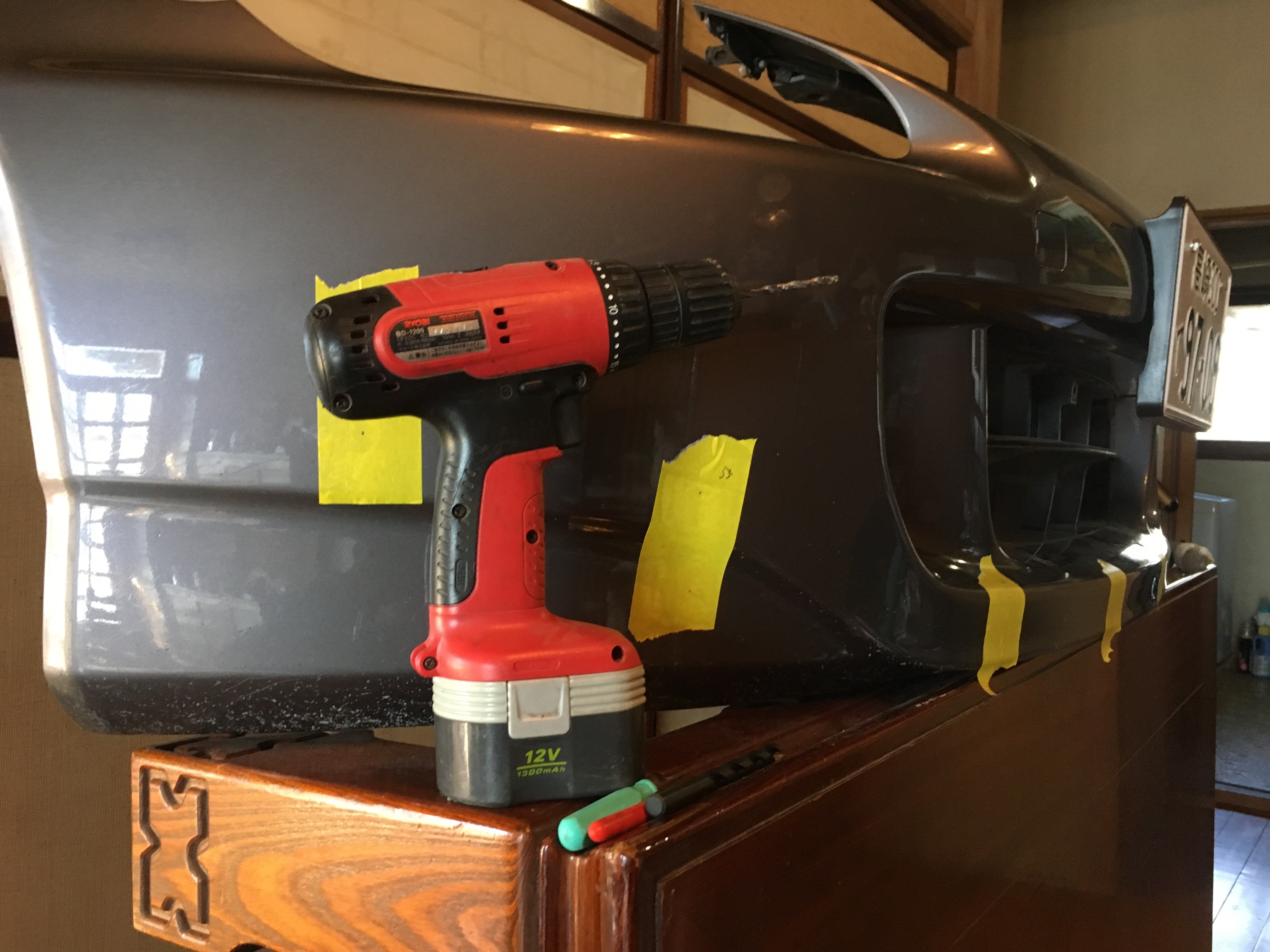 今回、最も難易度が高いテクニカルな工程は、バンパー内側正面から固定するのに必要な「穴開け8か所」である。