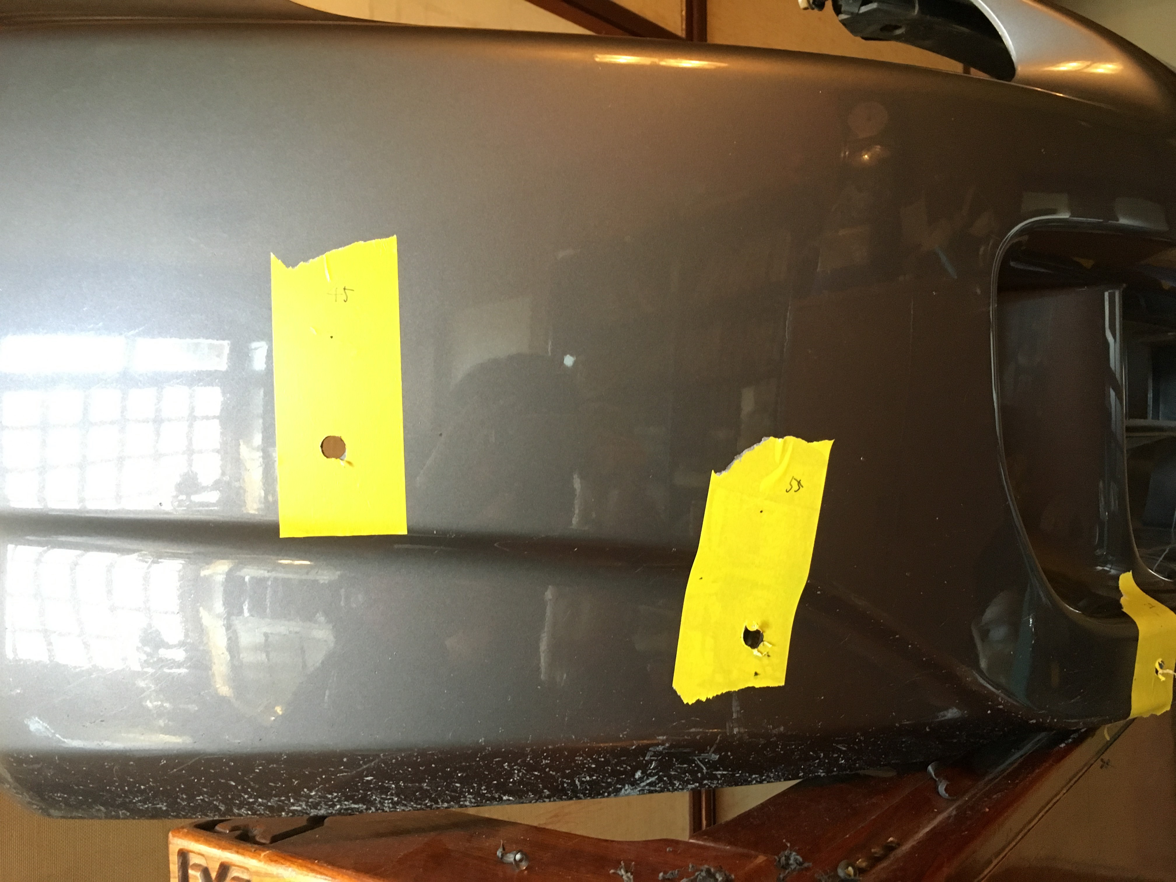 距離関係が計測し終わったら、続いてバンパーにタイプSリップの固定穴の位置をマーキングする。