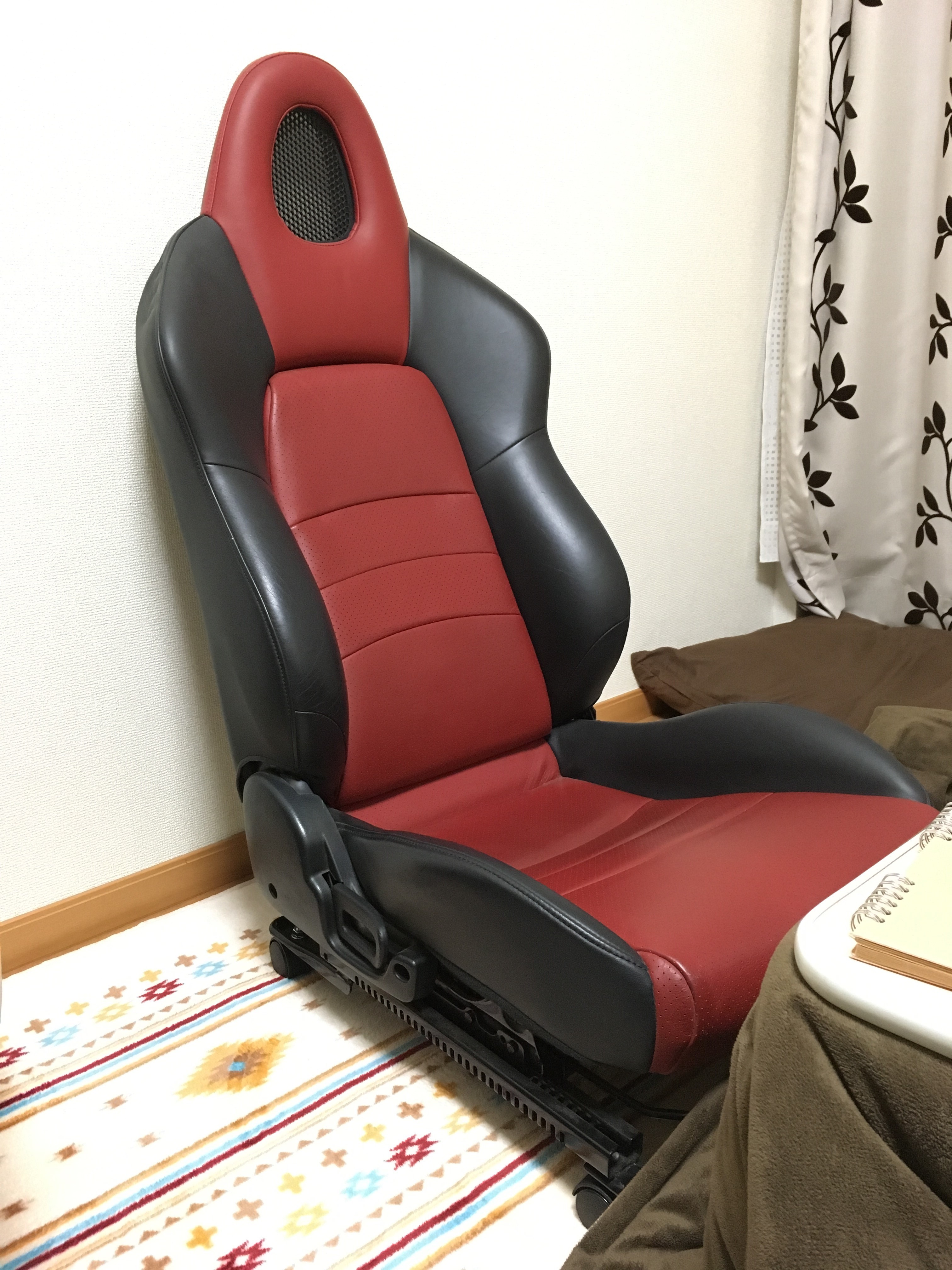 外した純正オプションの本革シートは「座椅子」として第二の人生を謳歌している