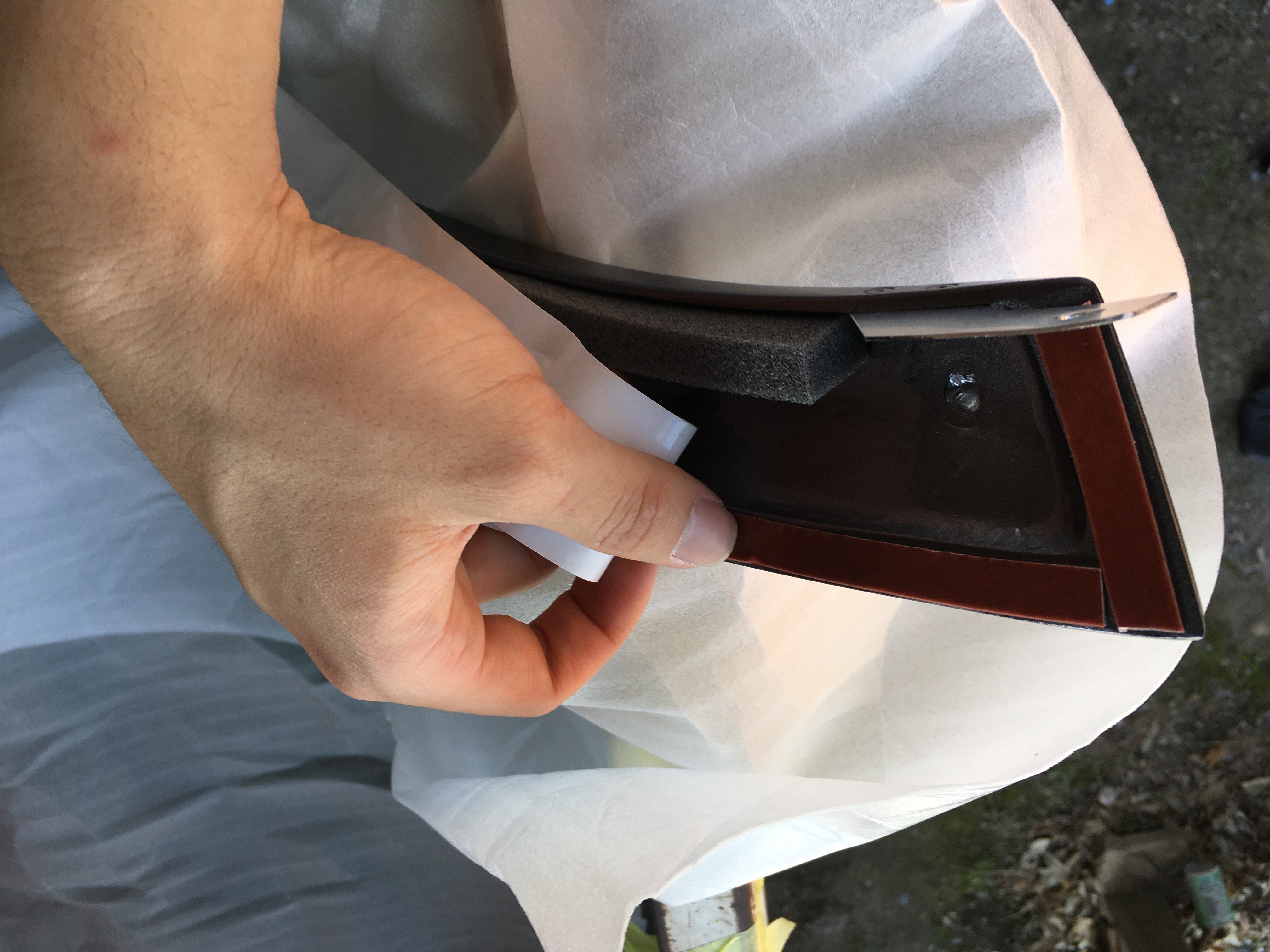 実際にやってみると、ビスだけでは固定できず、付属のスポンジテープで隙間を埋め、さらに付属の両面テープでビスとビスの間をしっかり固定することが必要である。
