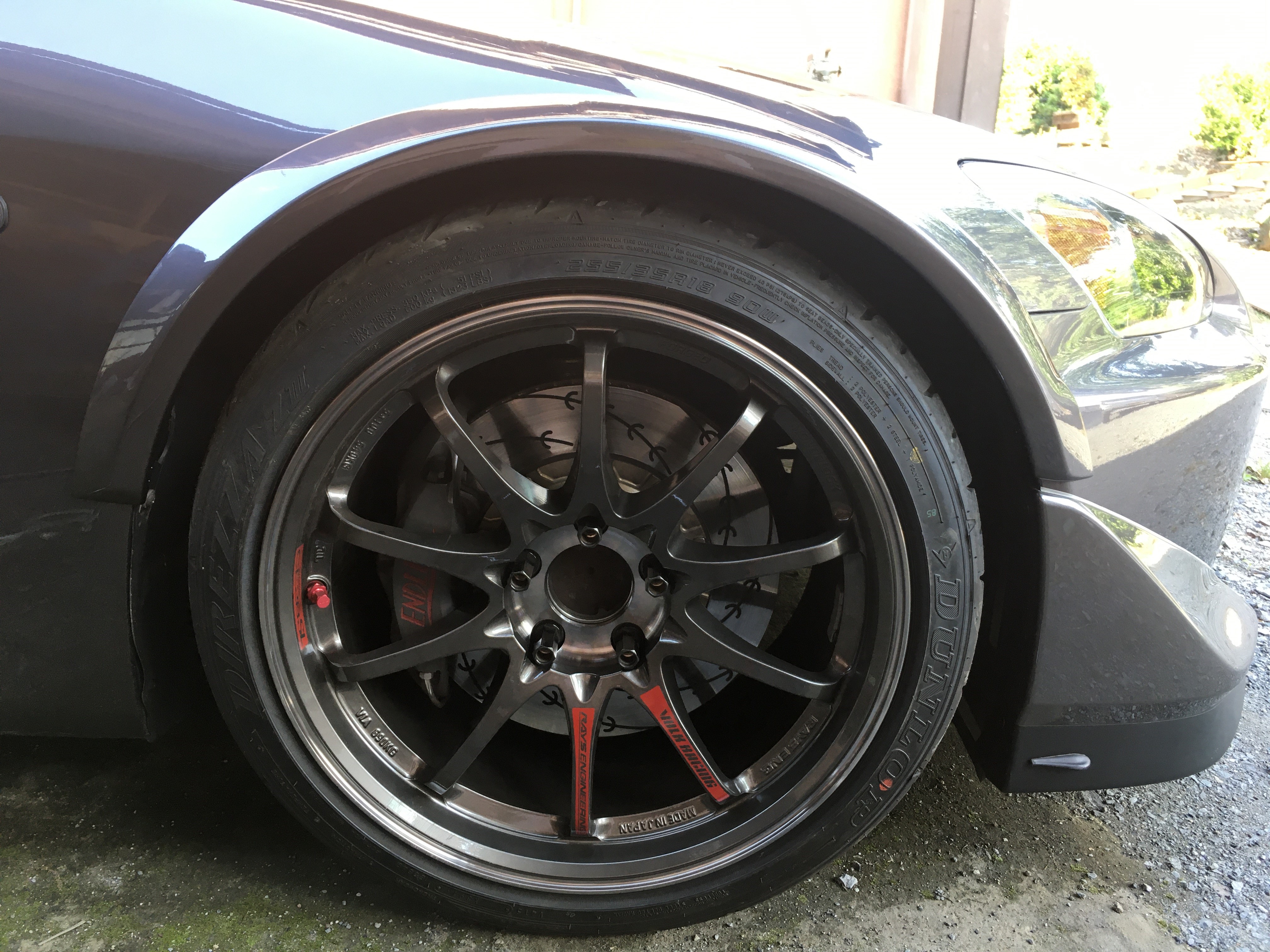 愛車S2000は憧れの鍛造ホイールRAYS「CE28SL」でS2000を18インチ化せよ!によって、9.5J+45の255/35R18のタイヤを履かせている。
