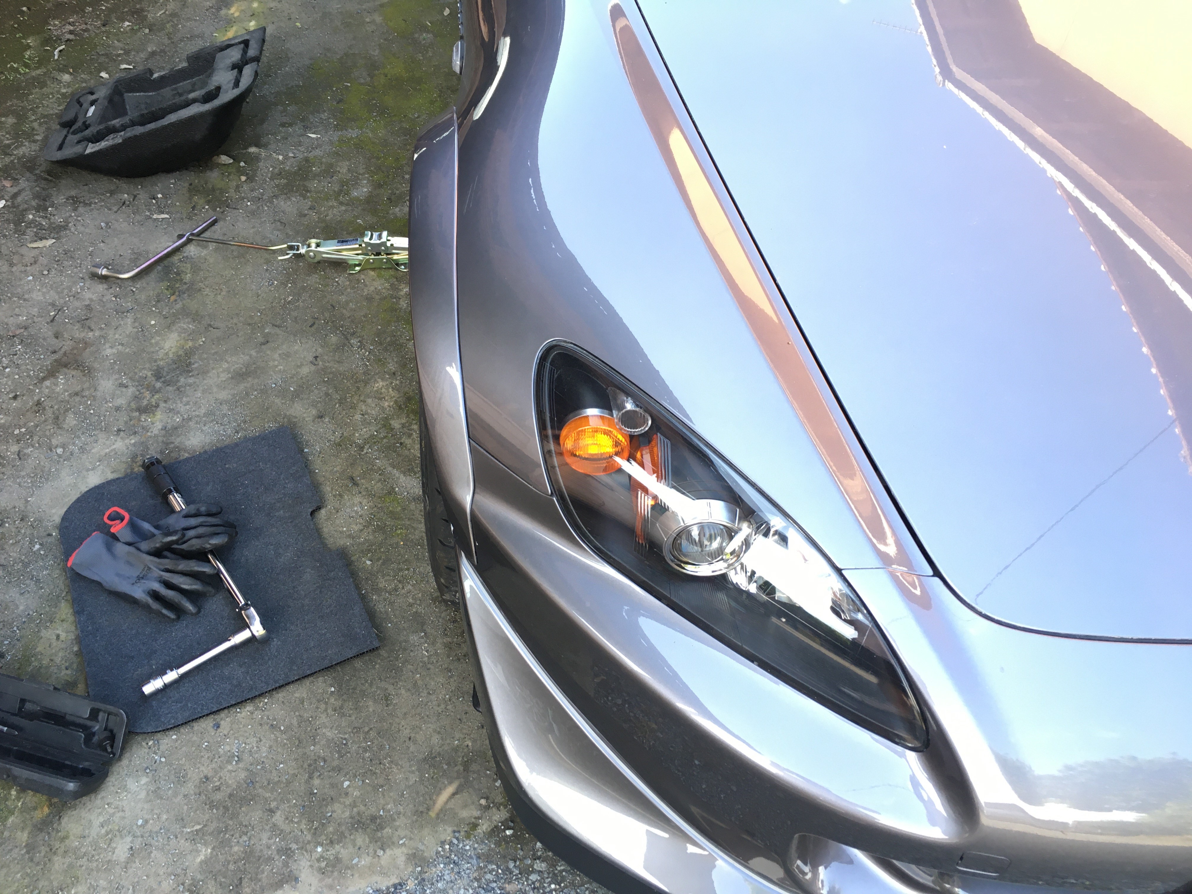 愛車S2000はスタンダードから約30mm近く外に出ているため、フェンダーをツメ折&叩き出ししていても「はみ出しタイヤ」になっている。